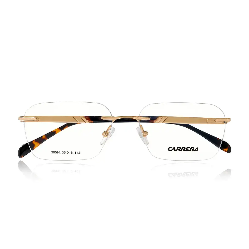 Description:The Carrera Rimless Rectangle Eyeglass offers sleek sophistication with its golden metal design. Lightweight yet durable, this rimless frame provides a minimalist aesthetic and everyday comfort. Perfect for those who appreciate timeless style and premium quality in their eyewear.