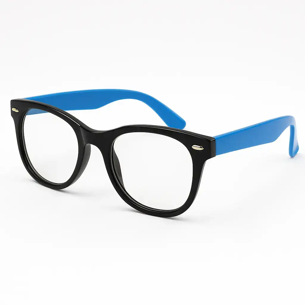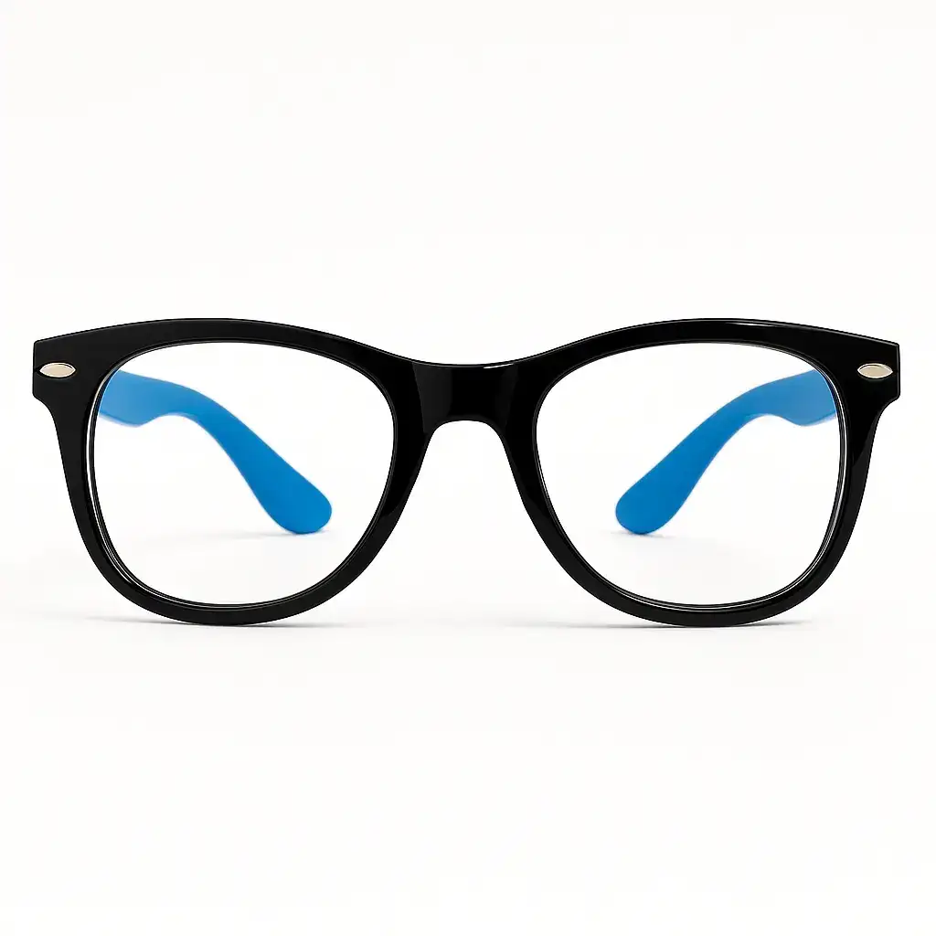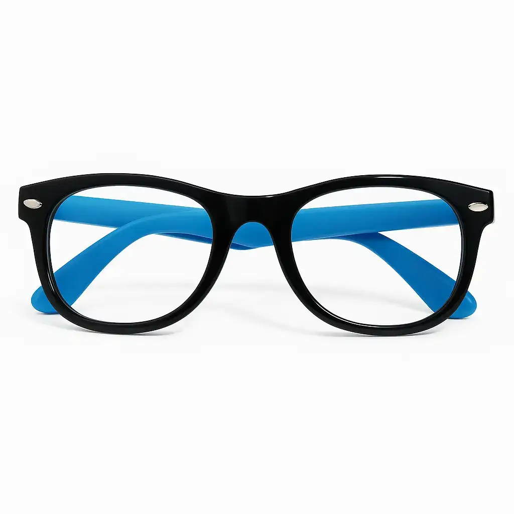 Short Description:A perfect blend of style and safety for your little one! This black front baby frame with vibrant blue temples is lightweight, flexible, and designed for active kids. Ideal for everyday use with maximum comfort and a snug fit.
