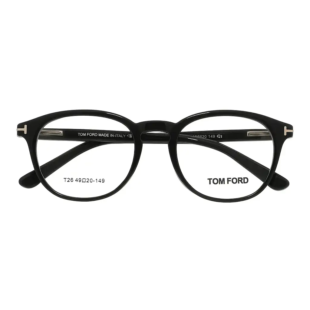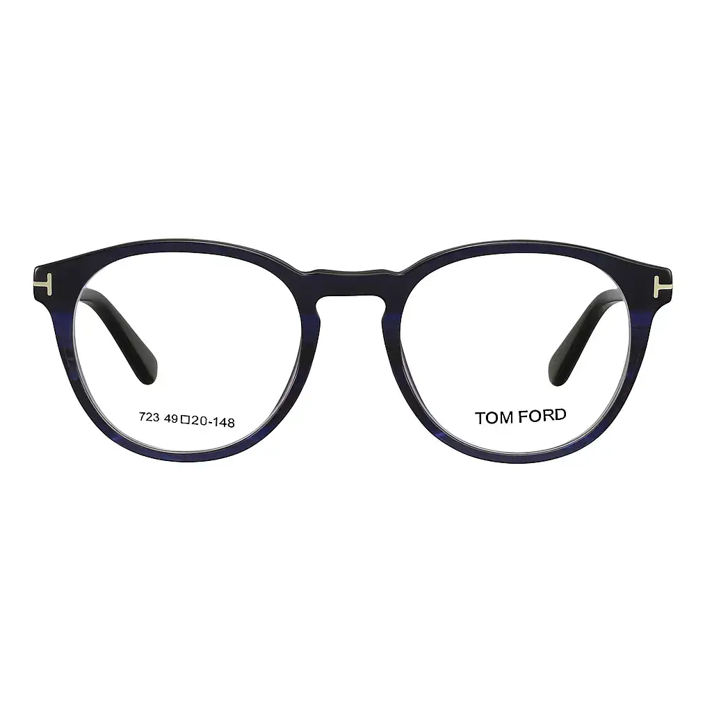Description:This Tom Ford eyeglass frame features a sleek round shape in a deep navy acetate, complemented by the brand’s signature gold “T” logo on the temples. Lightweight, modern, and unmistakably stylish, it’s perfect for daily sophistication.