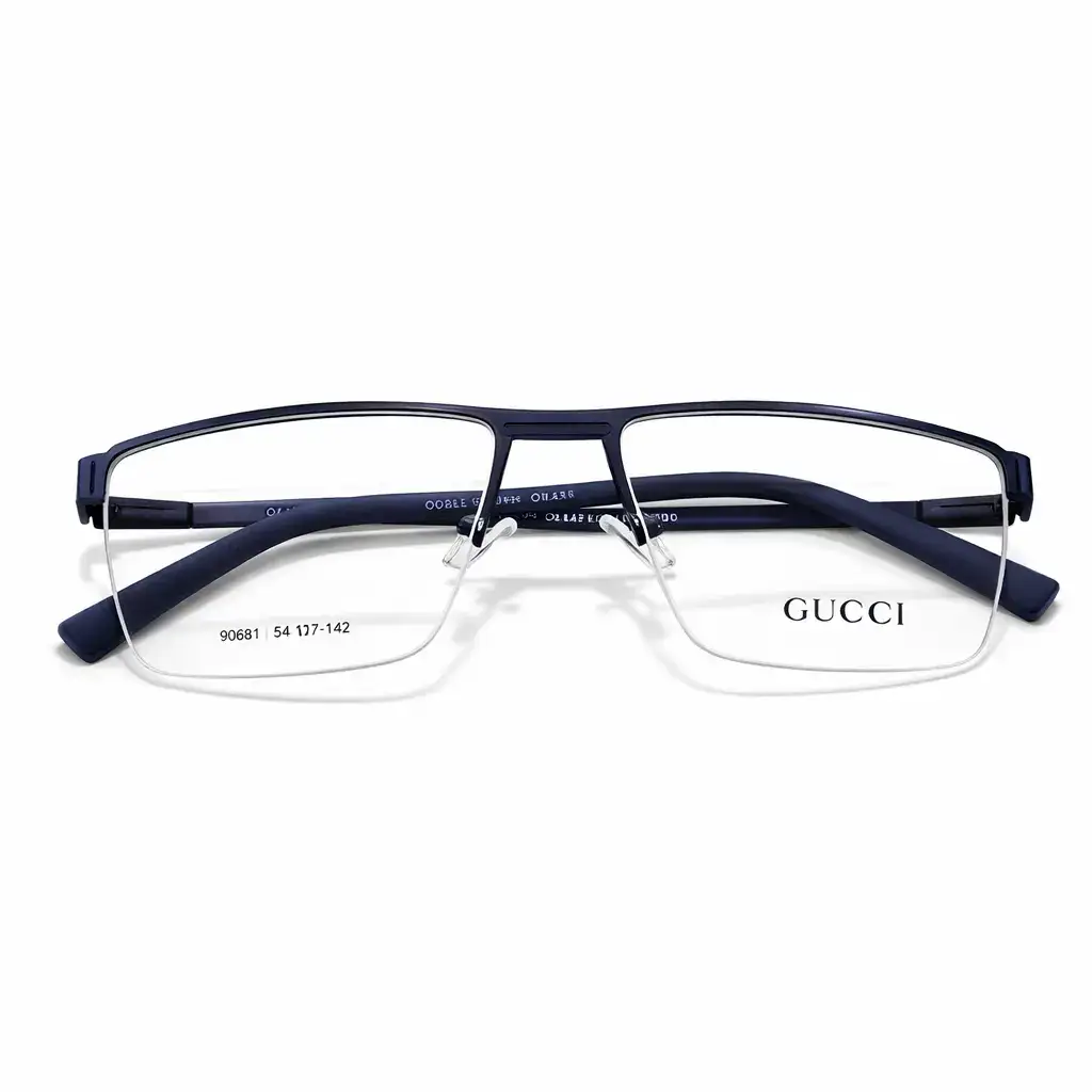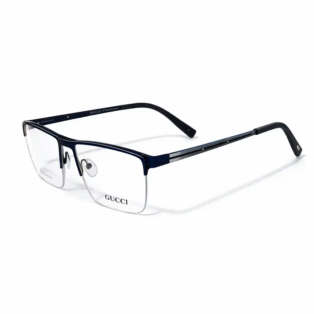 Description:These Gucci eyeglasses feature a sleek blue rectangular half rim metal frame designed for durability and elegance. The lightweight metal construction provides comfortable all-day wear, while the modern rectangular shape delivers a refined and professional look for everyday style.