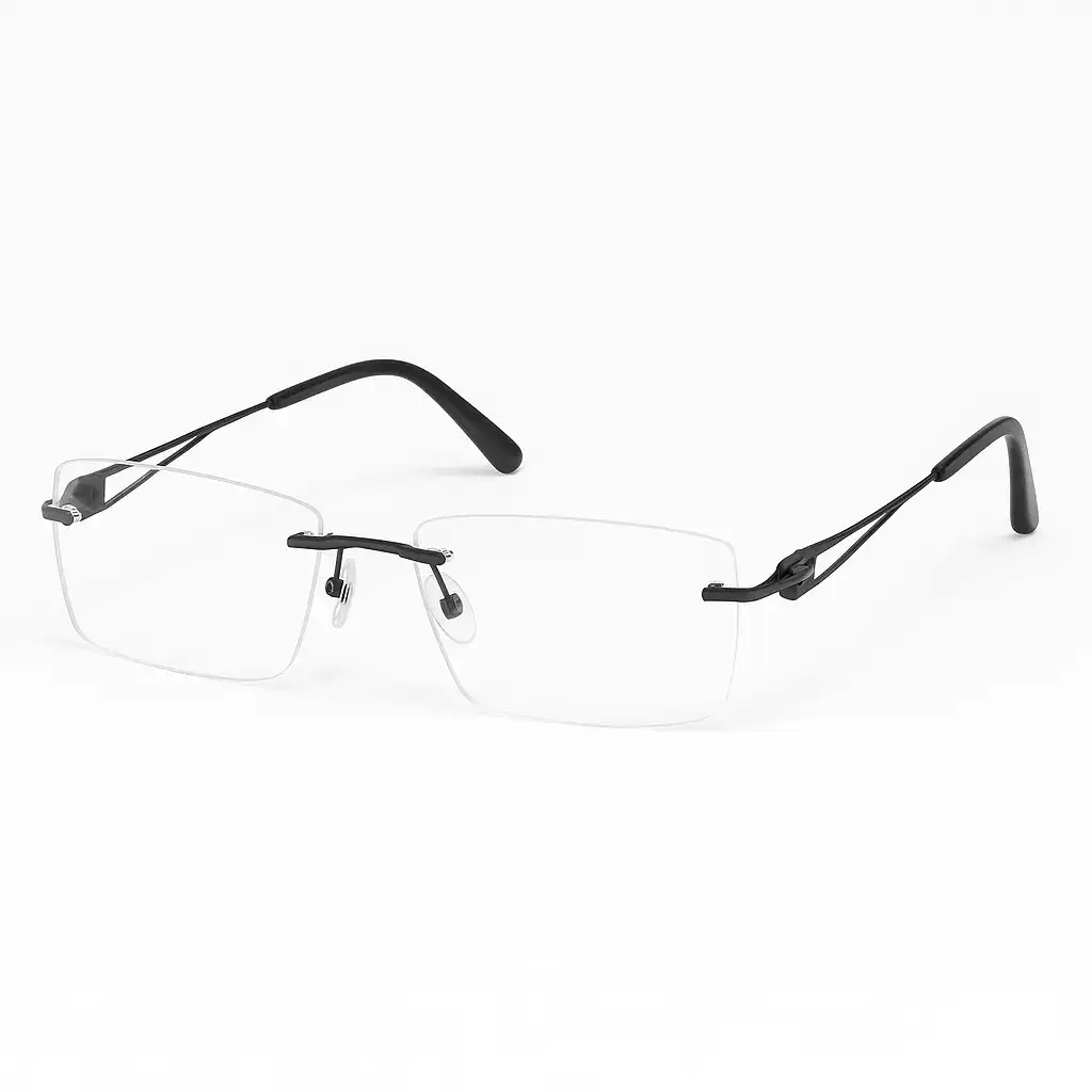 Description:This modern rimless eyeglass features a matte black bridge and uniquely sculpted temples that offer both flexibility and durability. Designed with lightweight materials and clear square lenses, it's ideal for daily wear, combining minimalist aesthetics with exceptional all-day comfort.
