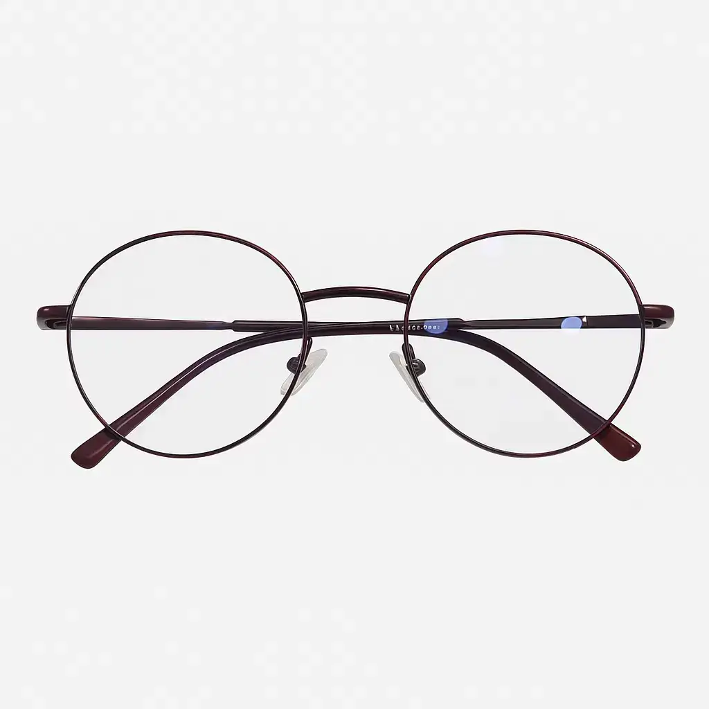 Description:This round metal eyeglass frame features a sleek maroon finish with thin rims and adjustable nose pads for lasting comfort. Lightweight and timeless, it blends vintage character with modern design—ideal for both professionals and everyday fashion wearers.