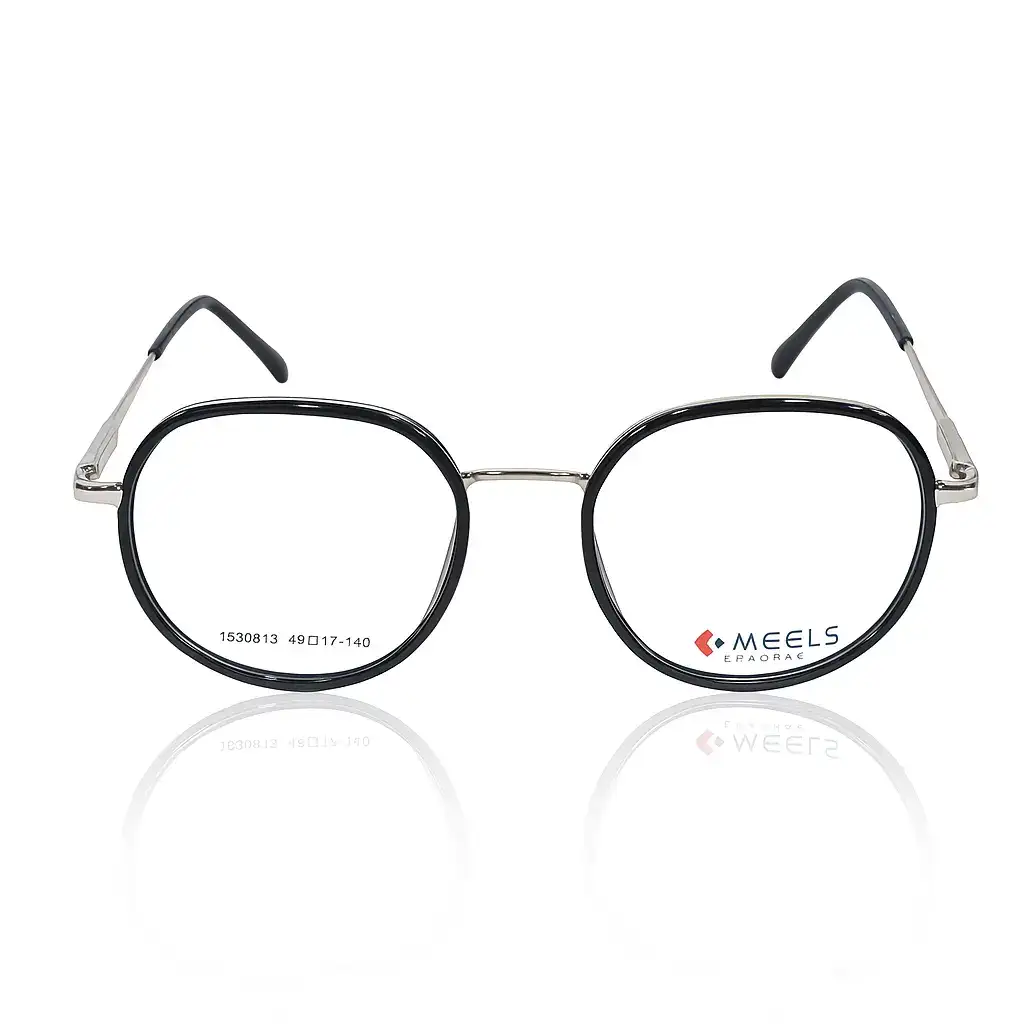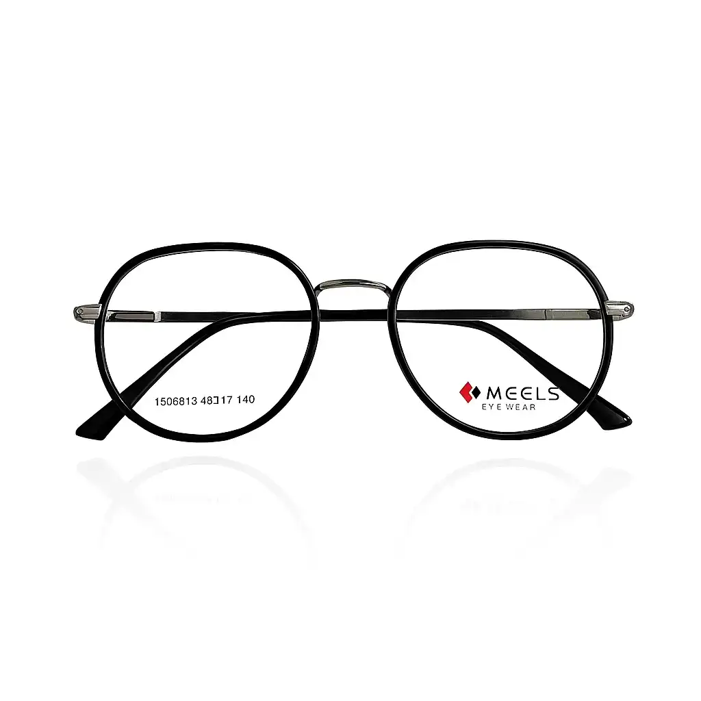 Meels Black Round Eyeglass with Plastic & Metal Frame