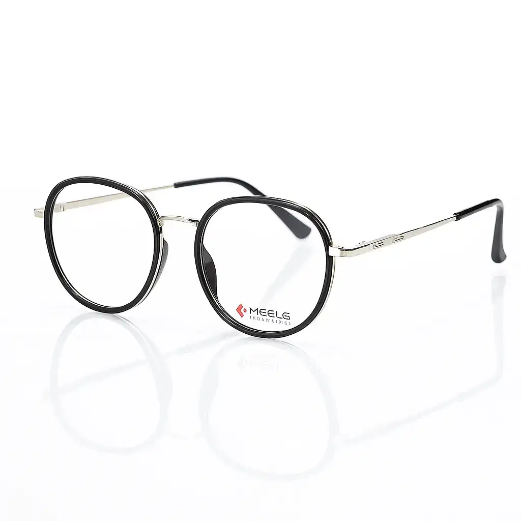 Description:This Meels eyeglass features a full rim round frame in timeless black, crafted from a blend of plastic and metal. Designed for durability and comfort, it adds sophistication and modern appeal, making it ideal for both professional and casual wear.