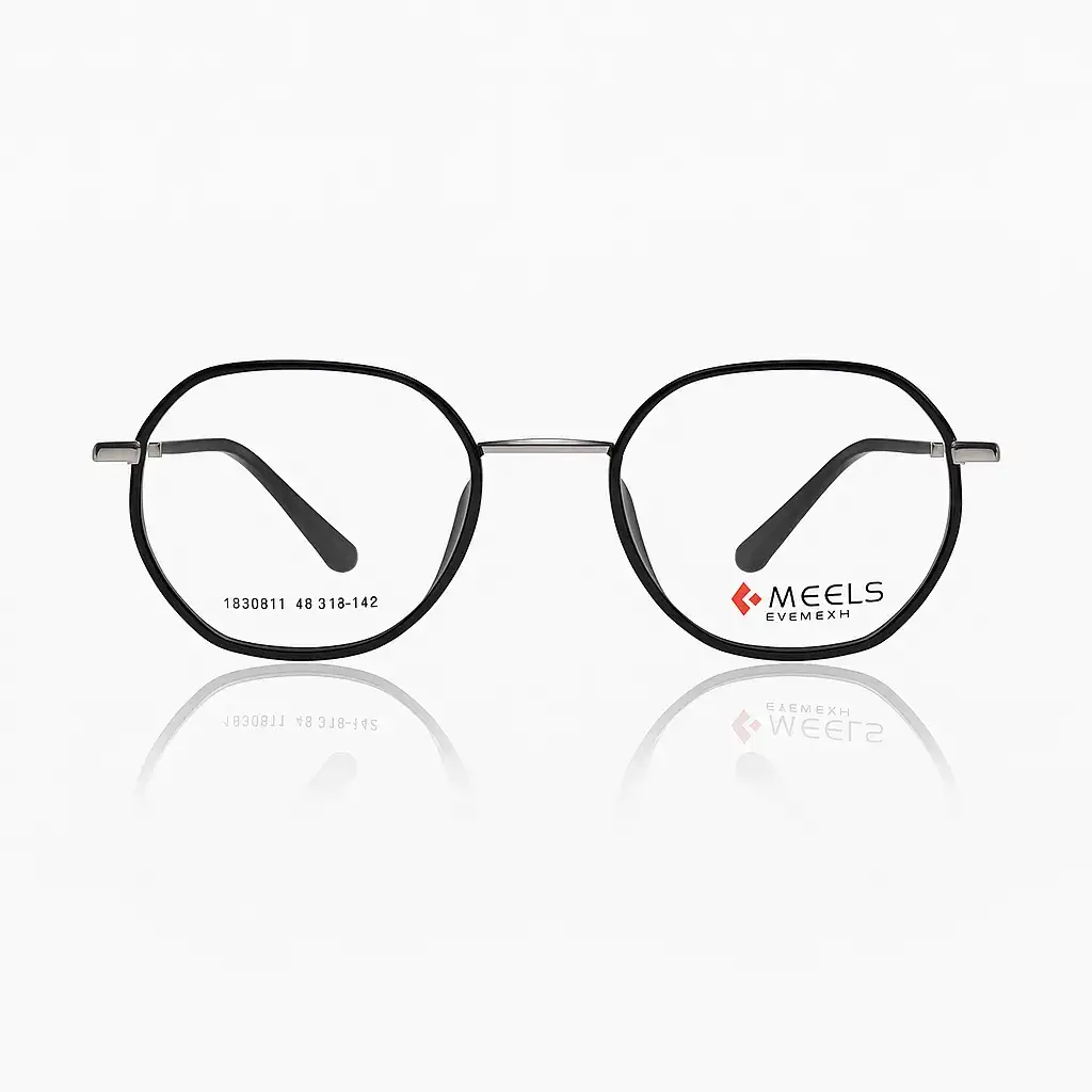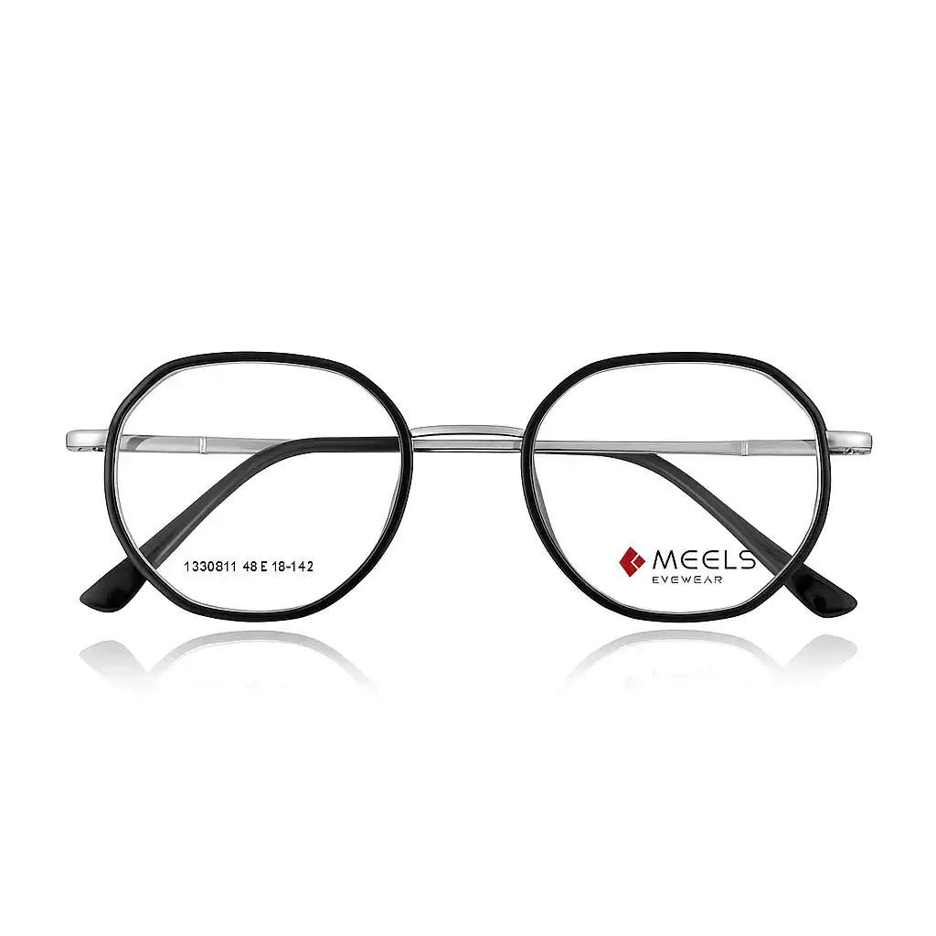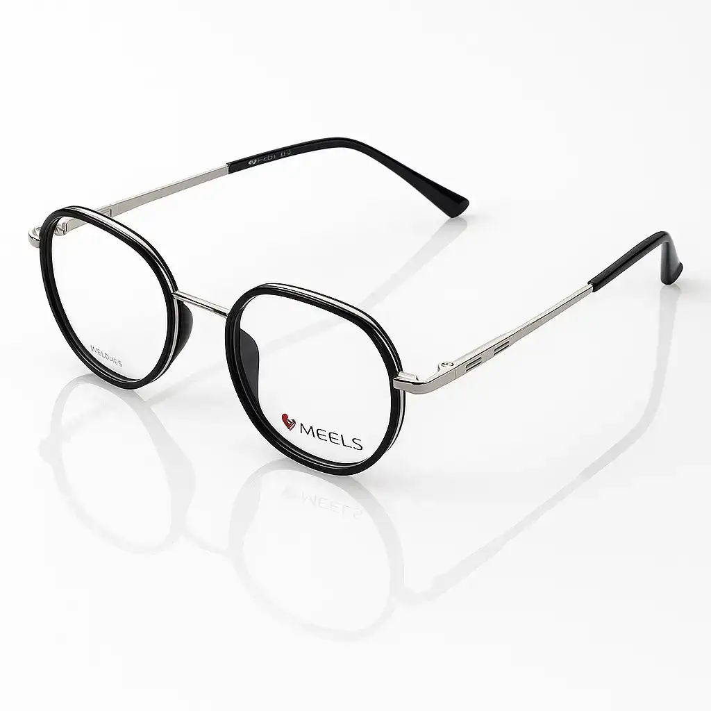 Meels Classic Black Round Eyeglass with Metal & Plastic Frame