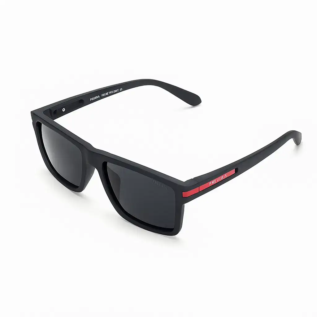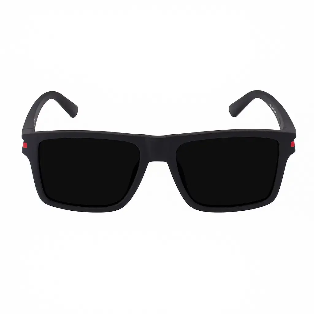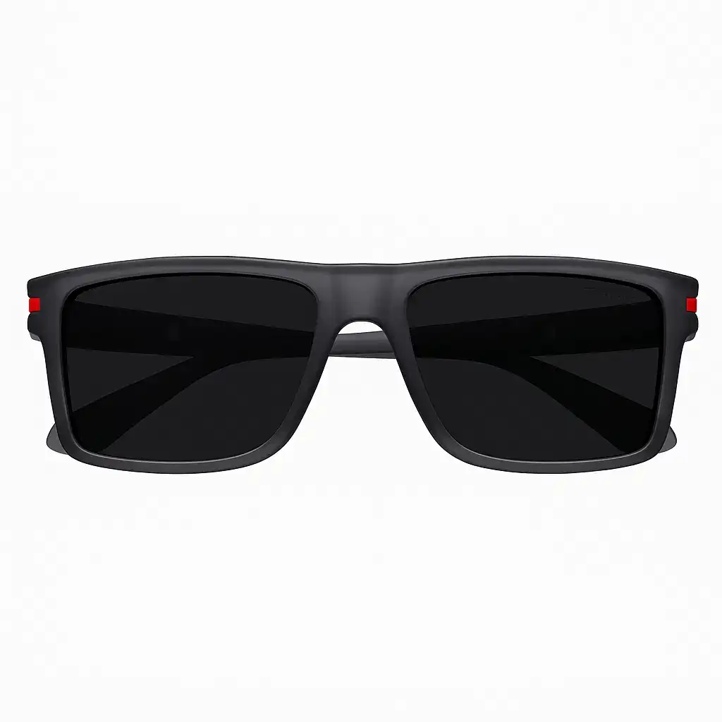 Short Description:These matte black sunglasses feature a sharp rectangular frame with bold red accents on the temples. Ideal for those who love sporty, confident style, the design offers glare protection, UV filtering, and a lightweight, all-day fit.