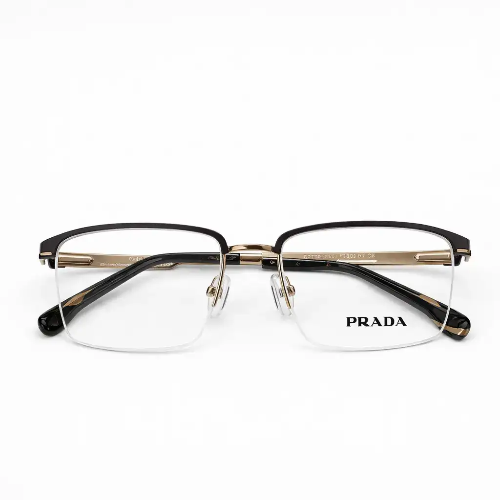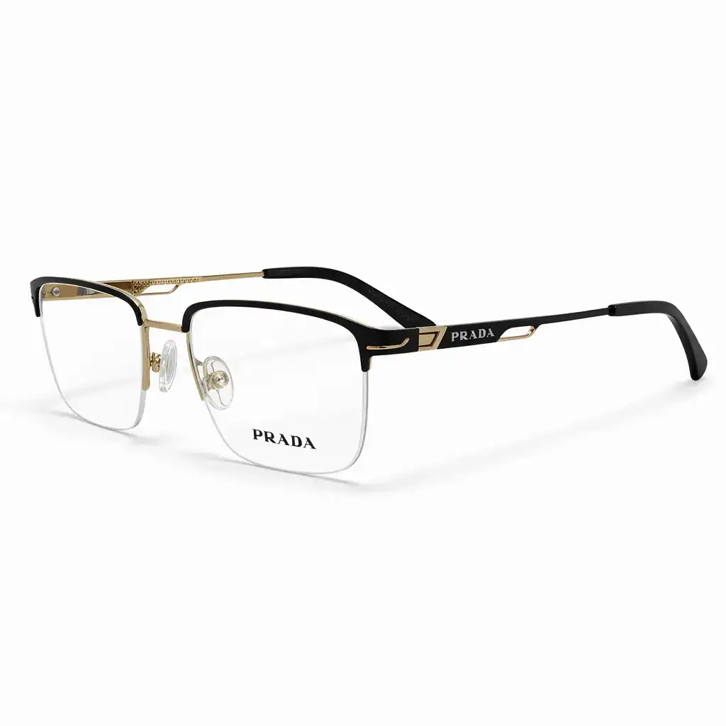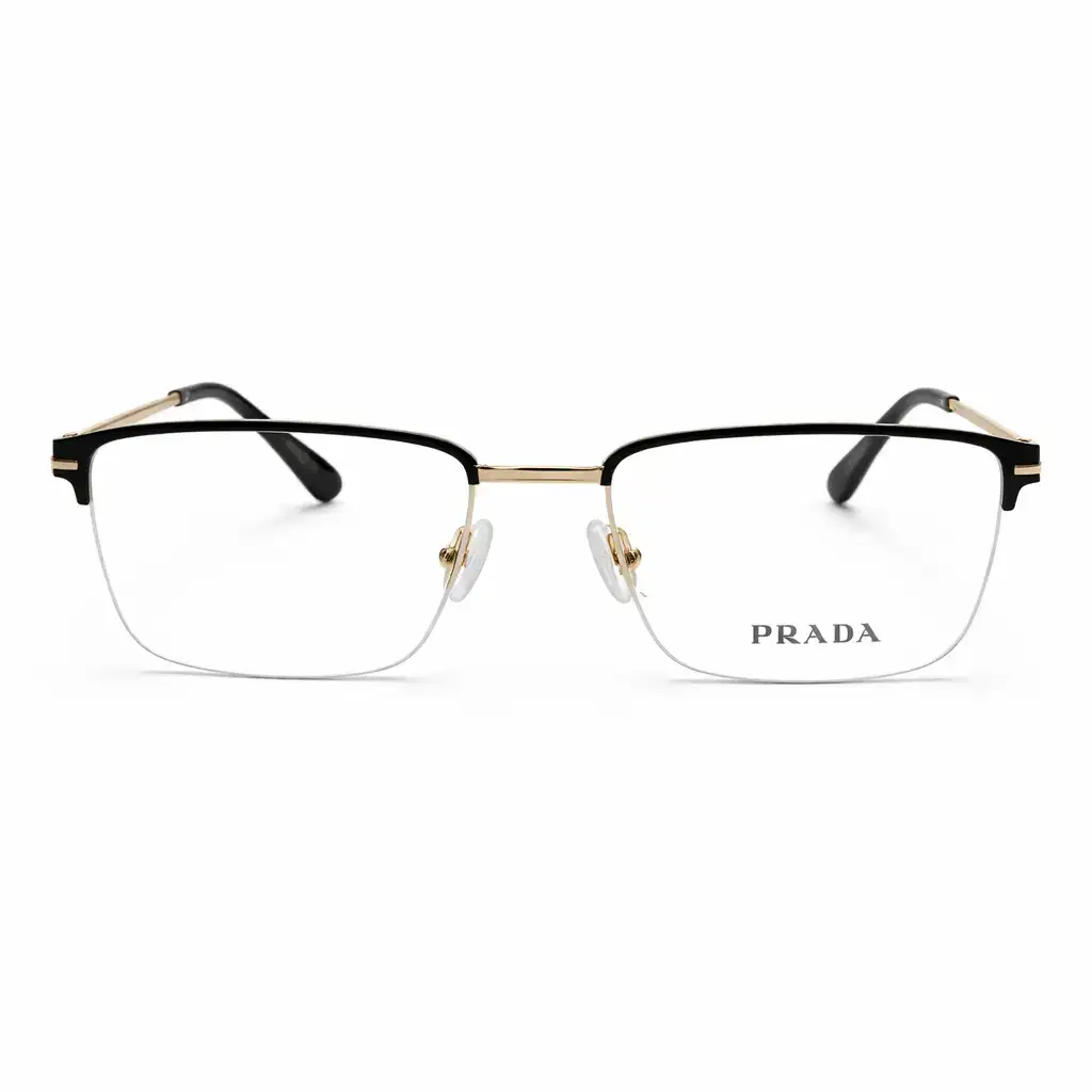 Description:These Prada eyeglasses feature a stylish black and golden rectangular half rim metal frame designed for elegance and durability. The lightweight metal construction ensures comfortable all-day wear, while the sleek rectangular shape delivers a modern, sophisticated look for everyday use.