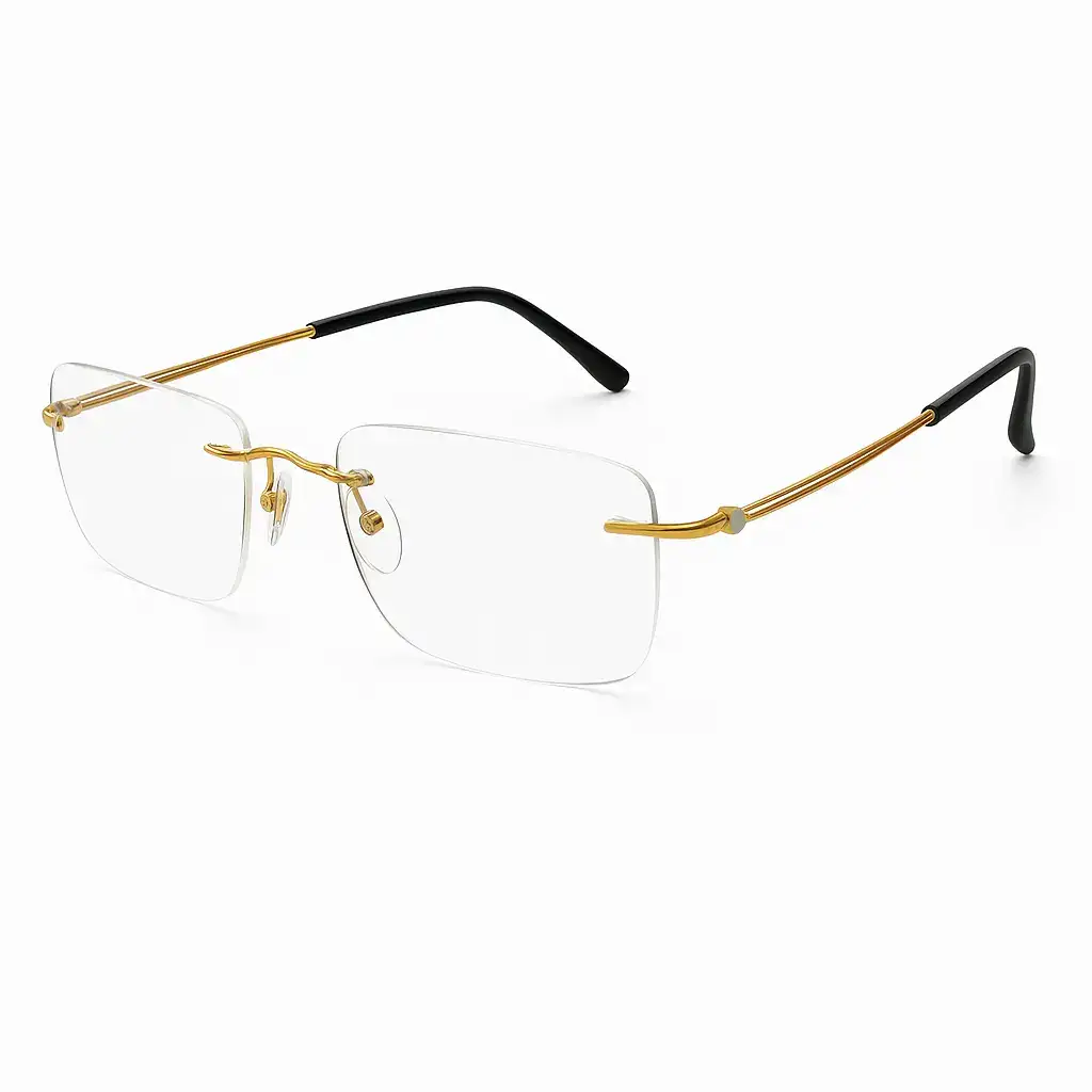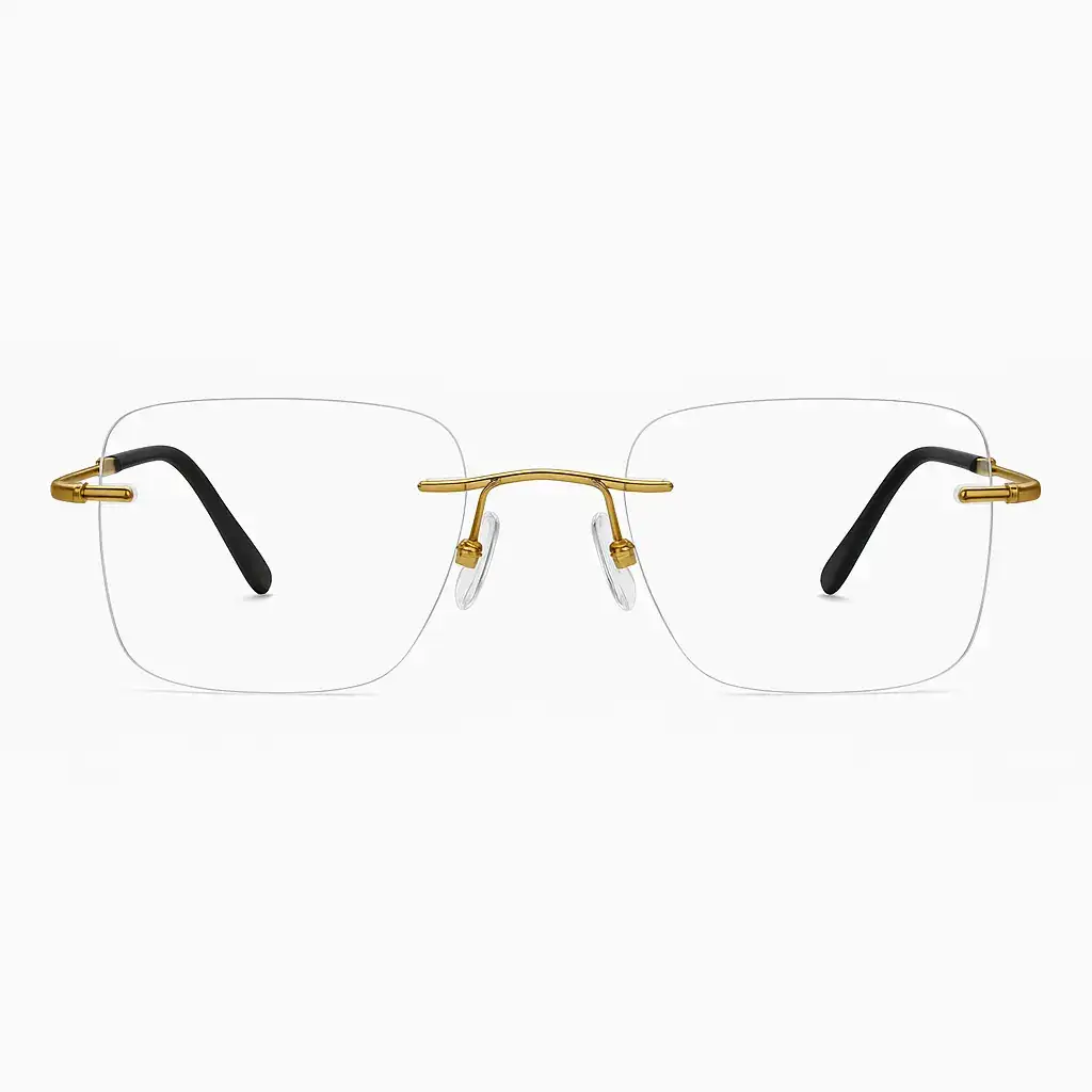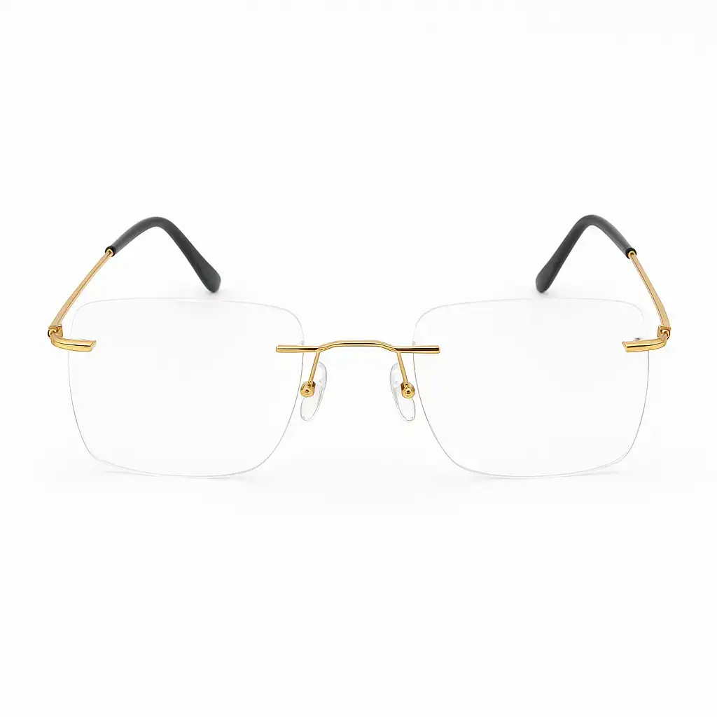 Premium Rimless Eyeglass with Elegant Gold and Black Arms