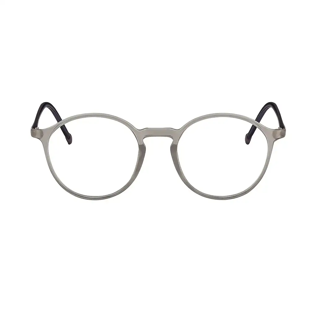 Description:This Fhedocean eyeglass frame features a lightweight frosted grey front with stylish maroon inner temples and striped end tips. The soft round shape and keyhole bridge offer a perfect mix of comfort, personality, and minimalist design.