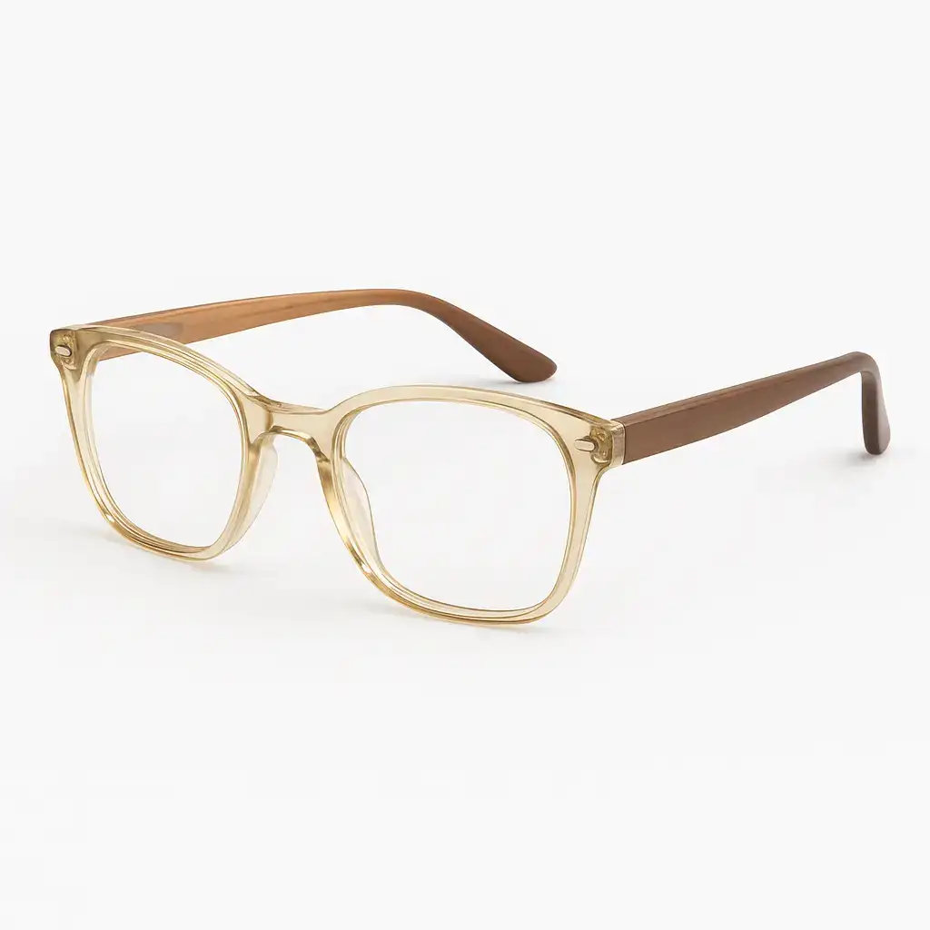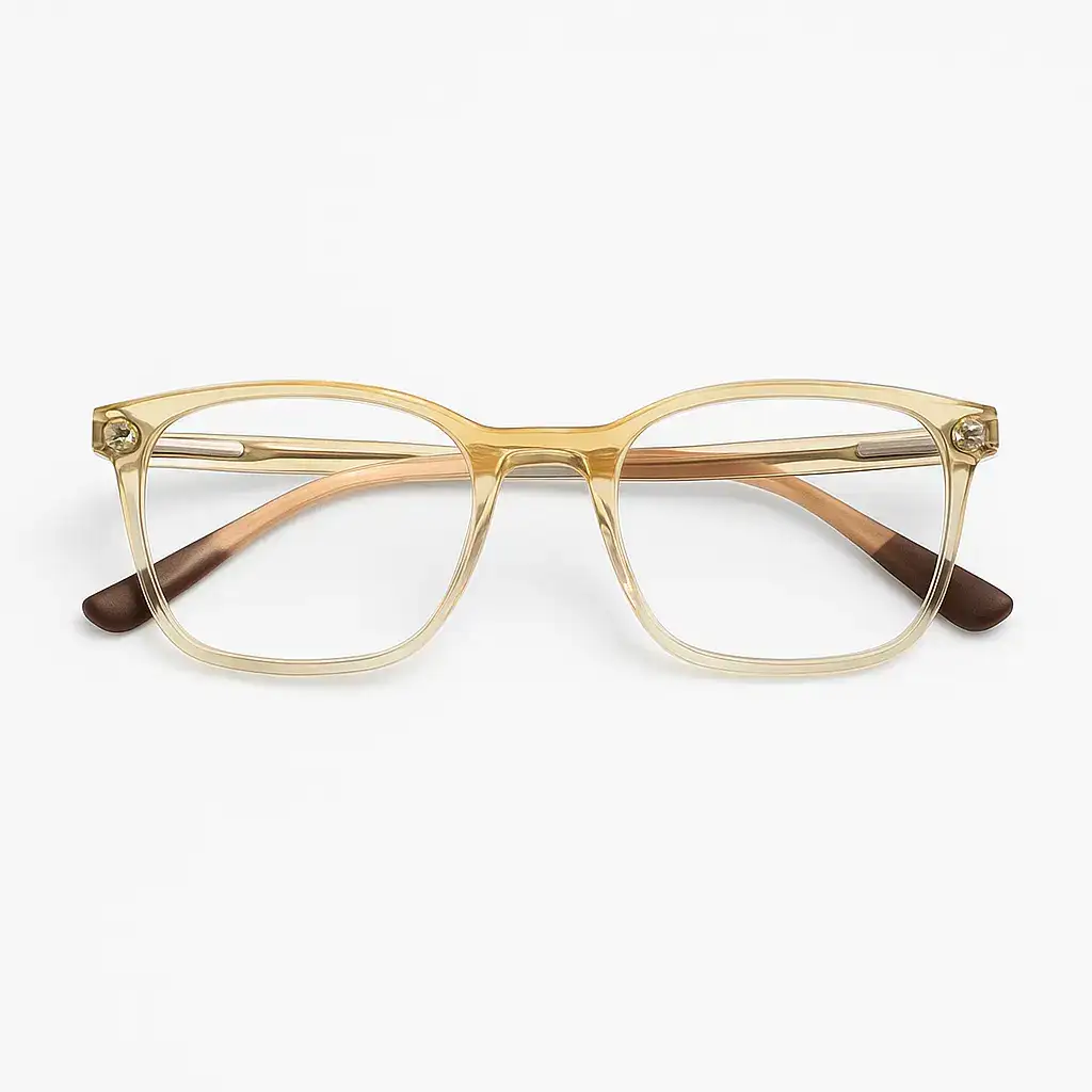 Description:This golden-clear baby eyeframe adds a premium touch to your child's look. With soft brown tips and lightweight design, it's perfect for all-day comfort, safety, and a touch of class.