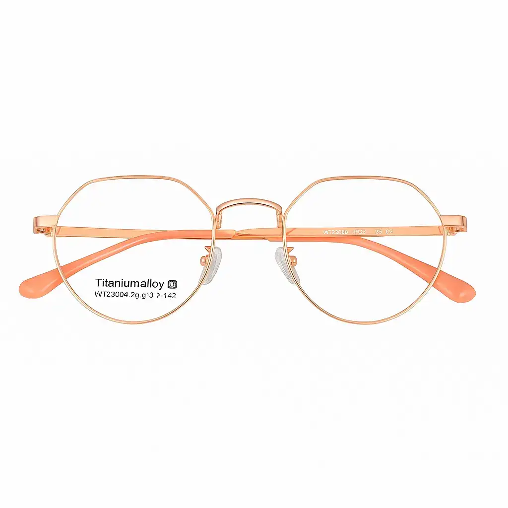 Description:This titanium alloy eyeglass frame features a striking orange color and a unique hexagonal-round shape. Ultra-lightweight and highly durable, it’s ideal for those who love modern, standout eyewear with both fashion and comfort in mind.