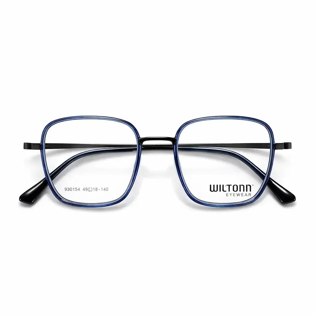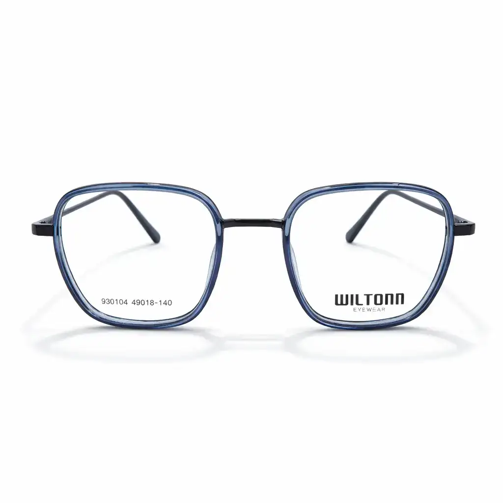 Wiltonn Blue Geometric Square Metal Eyeglasses Full Rim